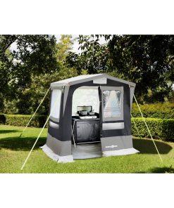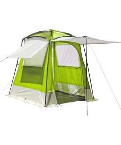 Praktisches Kabinenzelt für Camping und Strand aus UV-beständigem Material. Perfekt geeignet, um sich zu duschen und umzuziehen, aber dank seines Belüftungssystems auch als einfaches Kochzelt bestens verwendbar. Einfacher Aufbau. Mit Reißverschluss-Tür und umlaufendem Schmutzstreifen. Die steilen Wände sorgen für einen geräumigen Innenraum. Kompaktes Packmaß. Lieferumfang: Zelthaut, Montagematerial und Tragetasche.