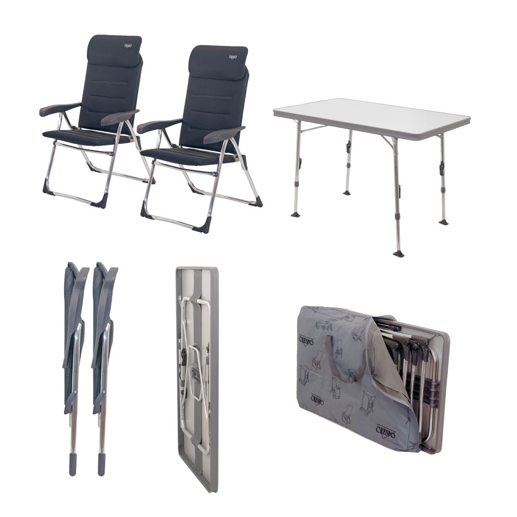 Das Crespo Stuhl- und Tischset Valencia gibt es in zwei Ausführungen. Das Set wurde speziell für kleinere Wohnmobile, Kastenwagen und Vans konzipiert.