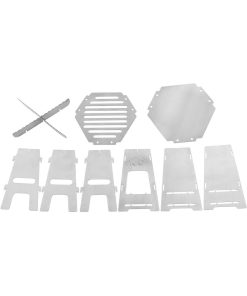 Flach zerlegbarer Outdoor-Kocher für festen Brennstoff.