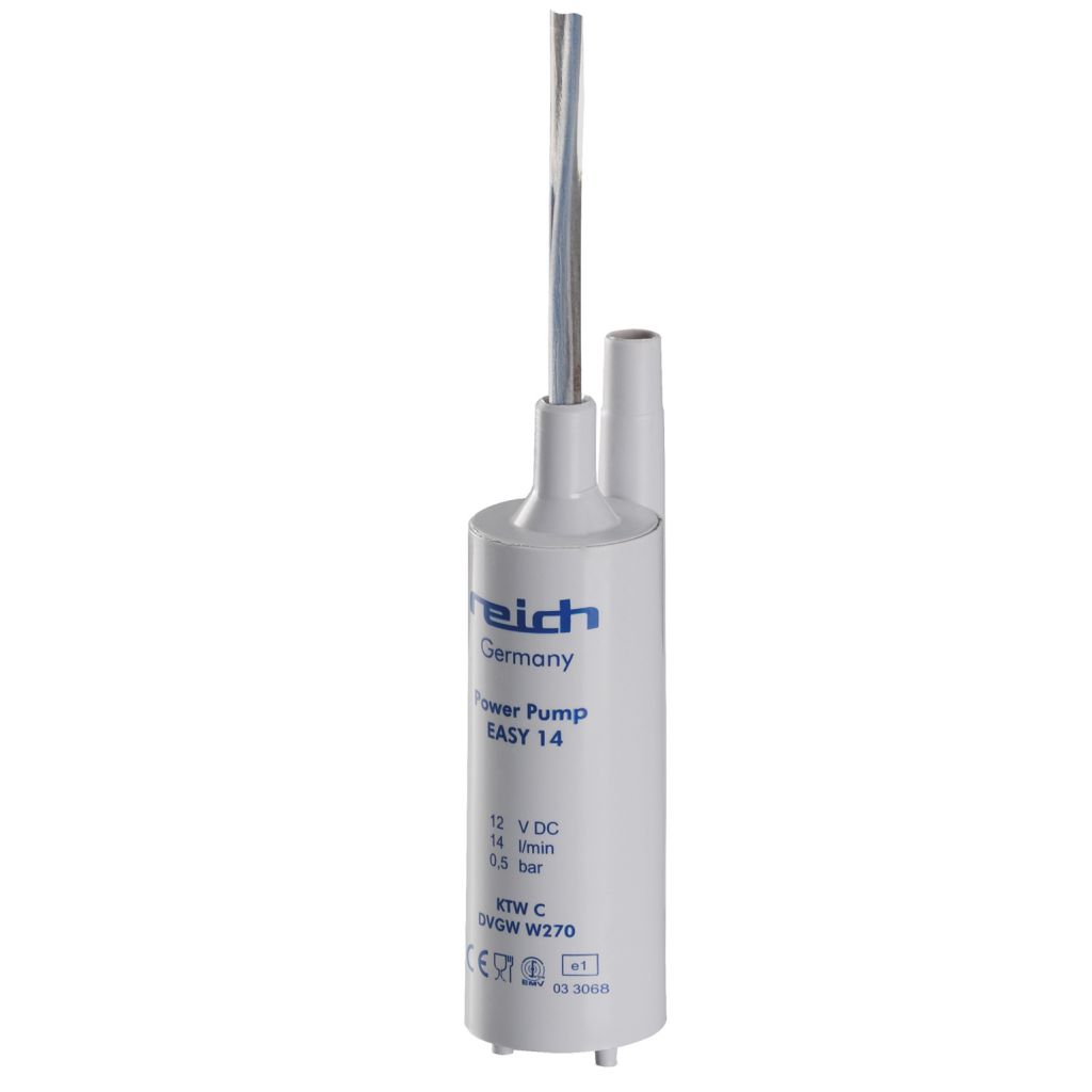 Die Tauchpumpe Easy fördert 14 Liter pro Minute. Sie dient häufig als Ersatz im Campingbereich.