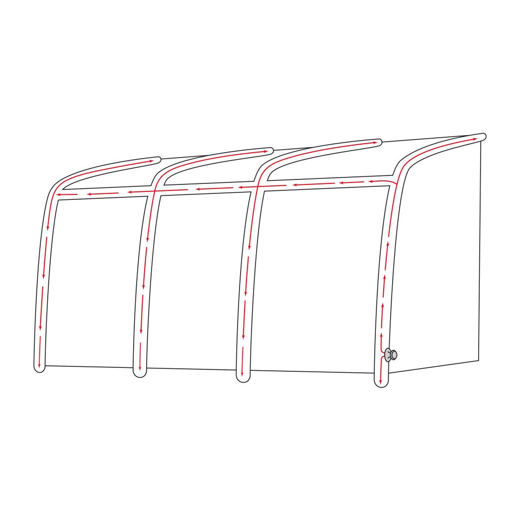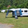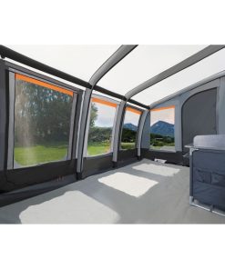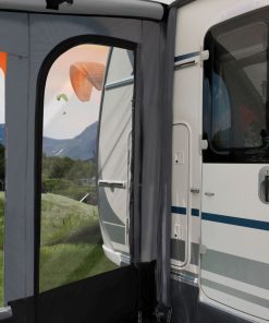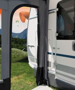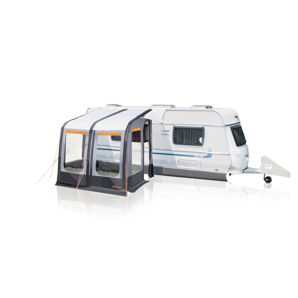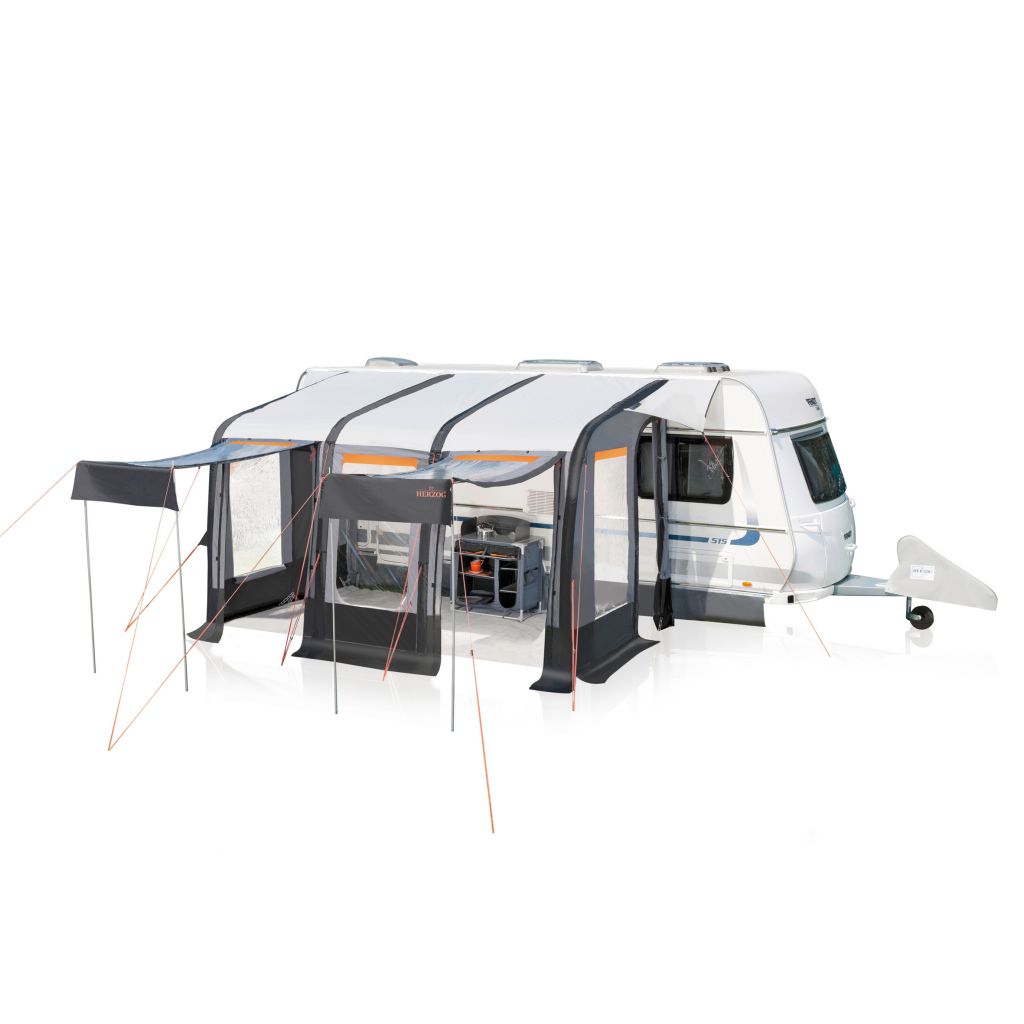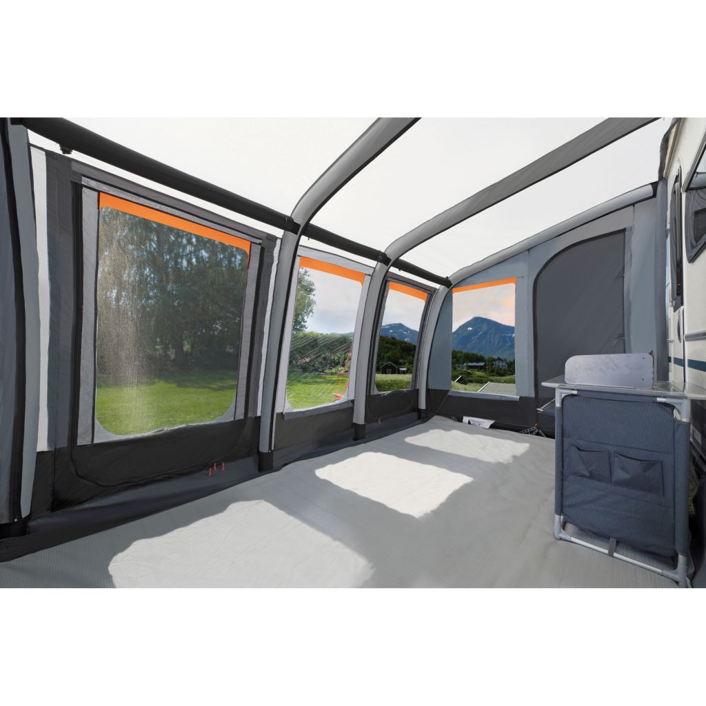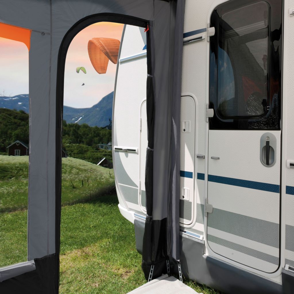 Luftig-leicht in modernem Design bietet diese Konstruktion alle Vorzüge eines herkömmlichen Vorzeltes. Die Luftschläuche ersetzen das konventionelle Gestänge.