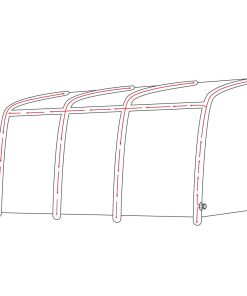 Seitenwände: Auf beiden Seiten ein Folienfenster mit Innenverdunkelung, sowie jeweils eine Eingangstüre mit Gaze-Einsatz und Außenabdeckung.