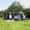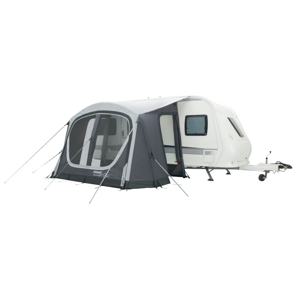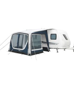 Holen Sie mit dem schnell aufblasbaren Wohnwagenvorzelt Cove einen perfekten Begleiter für Kurztrips und Wochenendausflüge. Es ist in ca. 15- 20 Minuten komplett aufzubauen, sodass Sie mehr Zeit zum Entspannen haben. Das stangenfreie Anschlusssystem ermöglicht eine sichere Befestigung am Wohnwagen. Dank der Höhenverstellung können Sie das Vorzelt auch auf unebenem Untergrund einfach gerade ausrichten. An sonnigen Tagen lässt sich die Frontwand vollständig ausbauen, sodass Sie auch im Zelt das Gefühl genießen können, im Freien zu sitzen. Widerstandsfähige, leicht zu reinigende Stehränder und Schmutzfänger aus PVC am unteren Teil des Zeltes schützen das Vorzelt vor Verschmutzungen.