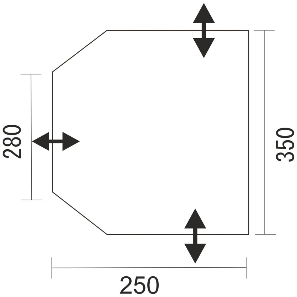 Vorderwand geteilt, mit großen Panoramafenstern, kann aufgerollt oder optional als Sonnendach verwendet werden. Die Fenster können mittels Fensterabdeckung blickdicht geschlossen werden. Zwei Fronttüren können unabhängig voneinander genutzt werden.