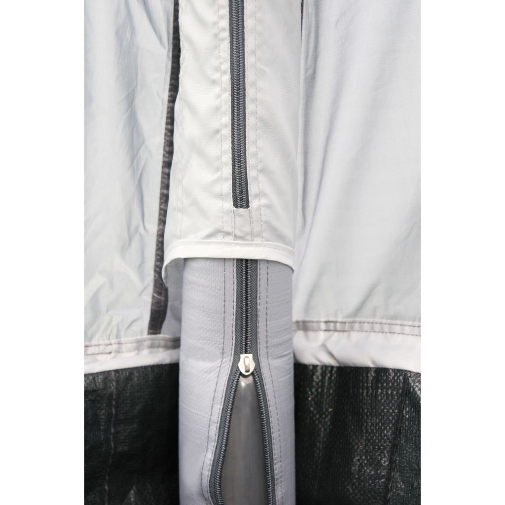 Seitenwände je eine Seitentüre mit Mesh-Einsatz. Festangenähte Anschlusspolster für eine perfekte Verbindung zum Fahrzeug. 2 Hochentlüftungen.