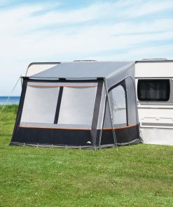 Seitenwände mit großem Lüftungsfenster ½ Gaze, ½ Folie; herausnehmbar; mit Prägefolienklappe und einer seitlich wegrollbaren Tür, die Reißverschlüsse sind abgedeckt. Volumenreiche Schaumstoffwulste und Andruckstangen als Option lieferbar.