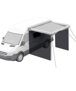 Es kann sowohl als Heckzelt, als auch für den seitlichen Anbau an Fahrzeuge eingesetzt werden.