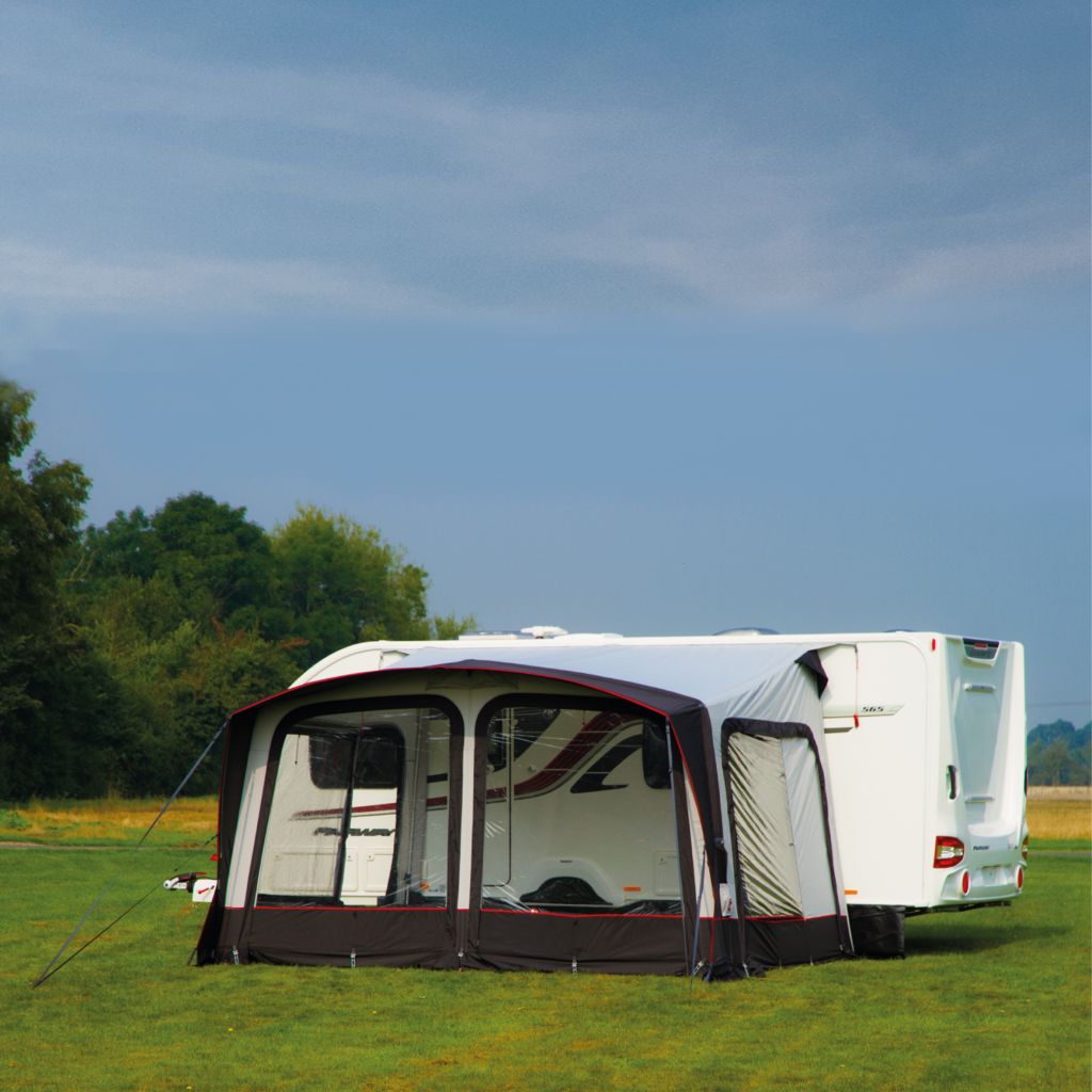 Klassik trifft Innovation, das Wohnwagenvorzelt Omega ist ein Vorzelt in einer klassischen Form verbunden mit neuester AAS-Lufttechnik.