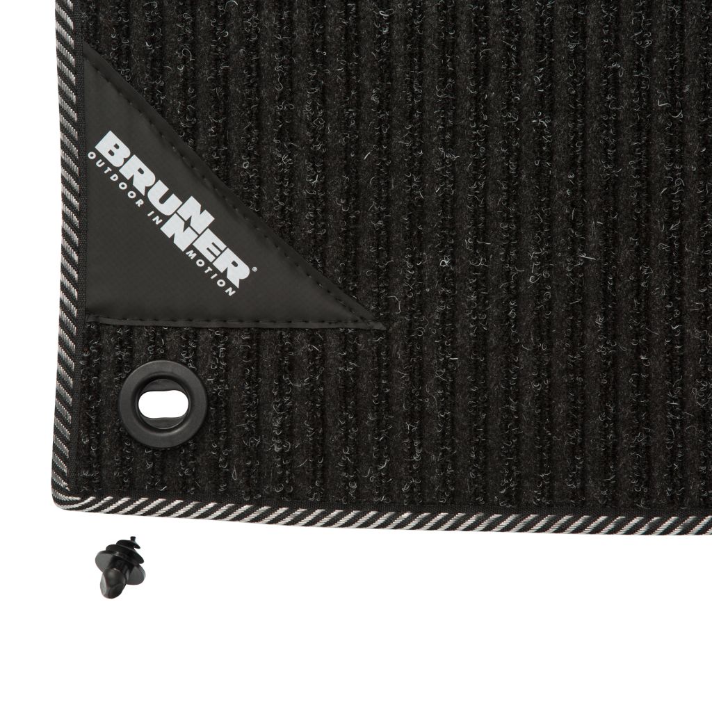 Hochwertiger Fahrerhauskabinen-Teppich aus Kunststofffasern mit Rippenmuster. Langlebige Ausführung mit Fersenverstärkung. Modellspezifisch zugeschnitten. An der Lenksäule extra umkandelt.