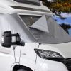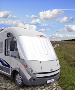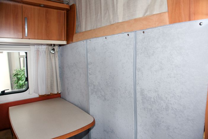 Aus 3-lagigem, ca. 8 mm starkem Iso-Sandwichmaterial (Oberware 100 % Polyester, Unterware 100 % Polyurethan) gefertigte Zusatzisolierung für Reisemobile mit Alkoven. Der Vorhang bietet optimalen Schutz vor Kälteeinstrahlung und Wärmeverlust zwischen Fahrerhaus und Wohnkabine. Die Befestigung erfolgt mittels 10 Druckknöpfen, für bequemen Durchstieg kann das Mittelteil mit 2 Reißverschlüssen geöffnet und einfach aufgerollt werden. Für eine angenehme Atmosphäre ist der Vorhang zum Innenraum hin mit einem freundlichen, farbigen Polyestervelours beschichtet, die Außenschicht besteht aus einer reflektierenden, alubedampften Polyesterfolie. Universell passend für viele Fahrzeuge, ein möglicherweise überstehender Rand kann entweder eingeschlagen oder von Hand zugeschnitten werden. Maße B 222 x H 148 cm.