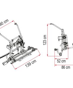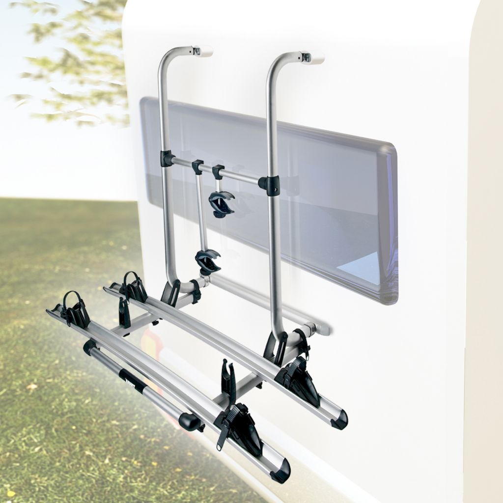 Für besondere Sicherheit und Stabilität beim Fahrradtransport mit massiven ovalen Rohren aus anodisiertem Aluminium versehener Fahrradträger, Spritzgussteile aus Kunststoff und Aluminium sorgen für qualitativ hochwertige Verarbeitung. Eine innovative Plattformverriegelung sorgt dafür, dass der Träger auch bei holpriger Strecke keine ruckartigen Bewegungen macht. Der Träger ist mit 2 flexiblen Fahrradschienen ausgestattet, die für optimalen Komfort mit montiertem Fahrrad zur Seite verschoben werden können. Die Montage erfolgt mit einer robusten, unten angebrachten Befestigungsschiene mit unsichtbaren Befestigungspunkten. Durch diese Schiene und eine optionale Befestigungsschiene (Art.-Nr. 89 450) für die obere Befestigung wird die Last gleichmäßig auf die Fahrzeugwand verteilt. Der Träger kann mit einer 3. variablen und einer 4. festen Schiene erweitert werden. Der stabile Tragrahmen für die Fahrräder ist bereits vormontiert und hat eine Tragfähigkeit von 60 kg (pro Schiene max. 30 kg); pro Fahrradschiene wird ein eigener Abstandshalter mit weicher Oberfläche mitgeliefert, geeignet für Fahrradholme bis ø 70 mm. Die Montagehöhe ist je nach Trägermodell variabel von 50 bis 150 cm.