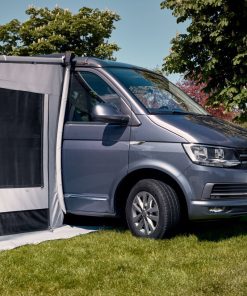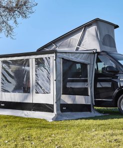 Markisenzelt der dritten Generation, das speziell für die Nutzung in Verbindung mit der Thule Omnistor 5102 und der T5 California Original-Markise konzipiert wurde. Es besteht aus Seitenteilen und einem Vorderteil in der Farbe RAL 9002. Die in den Seitenteilen eingearbeiteten Fensterfolien sind mit Moskitonetzen versehen und können vollständig geöffnet werden. Das Vorderteil hat eine Eingangstüre auf der rechten Seite.