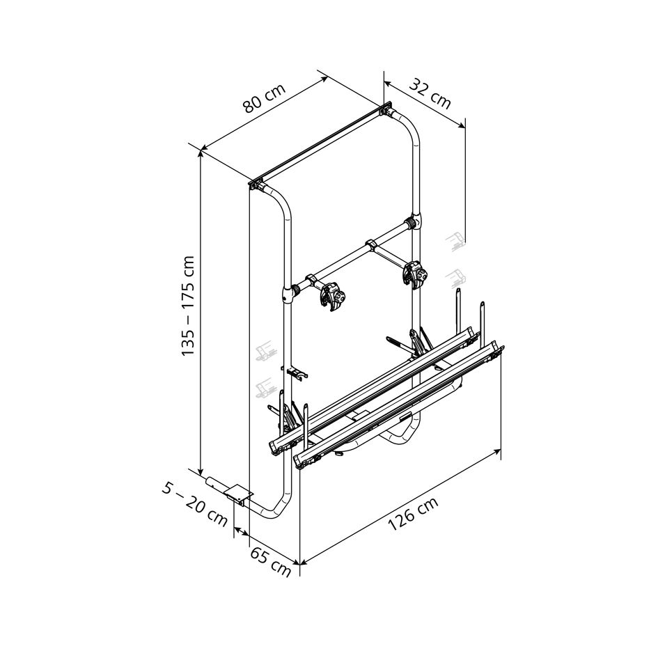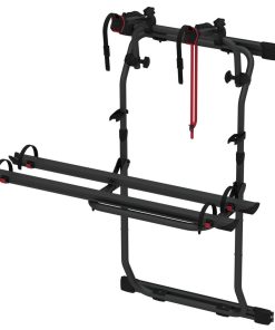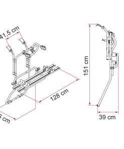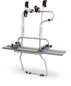 Zur Montage an der hinteren Wohnwagenwand. Die tragende Befestigung erfolgt unter dem Wohnwagen. Geeignet für die Aufnahme von 2 Fahrrädern. Die maximale Zuladung beträgt 38 kg, (19 kg je Fahrrad).