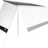 Thule Sun Blocker können senkrecht nach unten abgespannt aber auch für einen offeneren Bereich schräg ausgestellt werden. Der Bereich der Spanngummis bleibt offen.