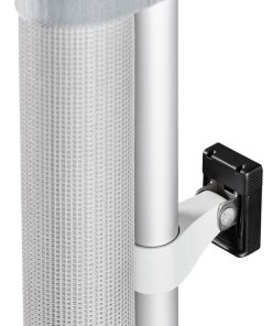 Selbst aufrollender Windschutz aus pflegeleichtem PVC-Gewebe.