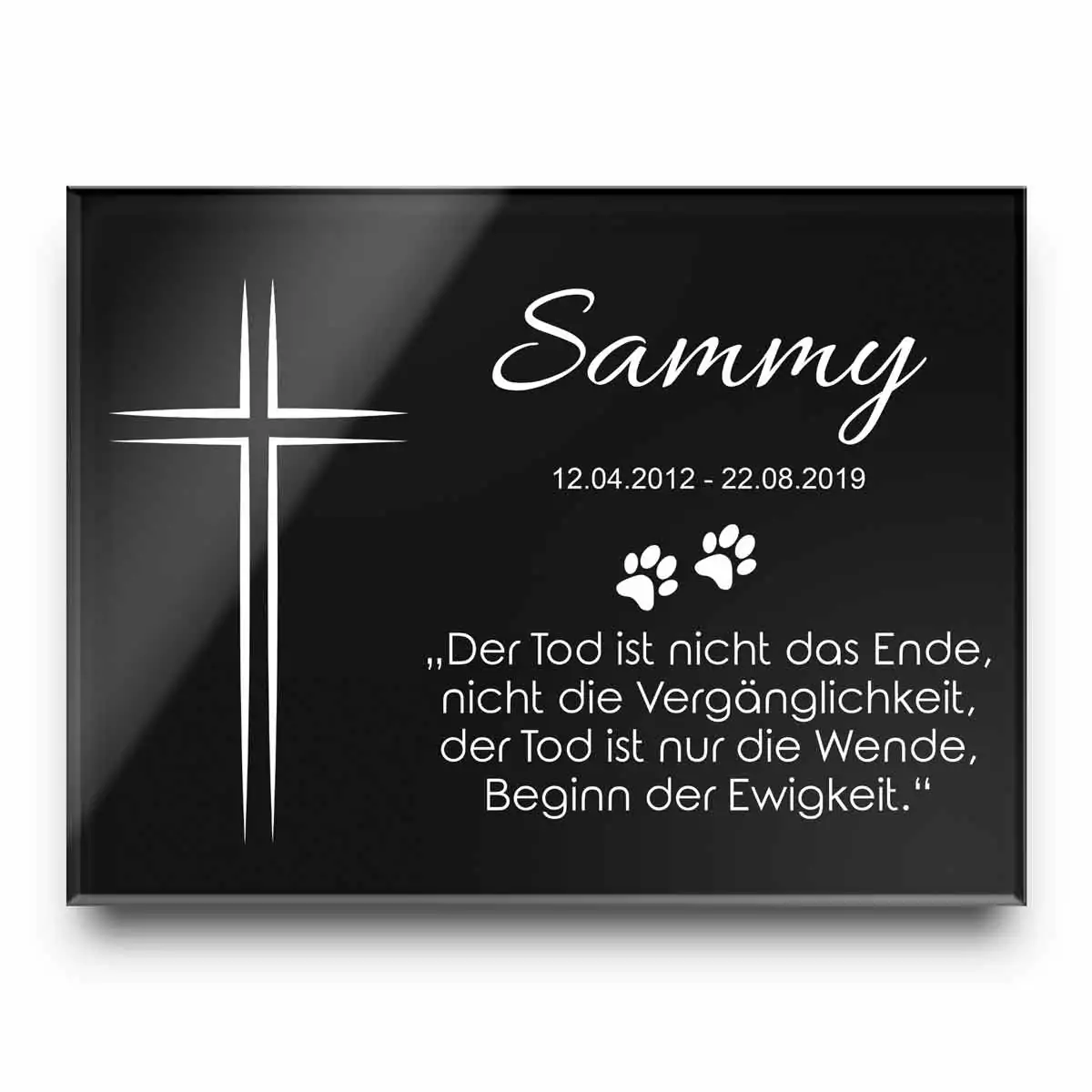 • Grabtafel aus Hochglanz Acrylglas mit Gravur
