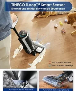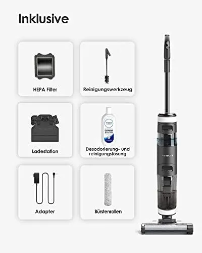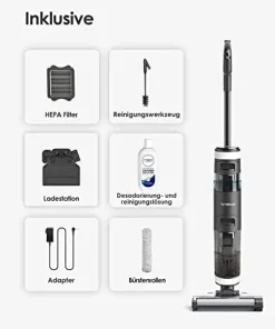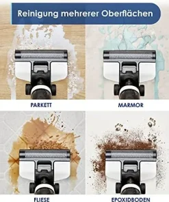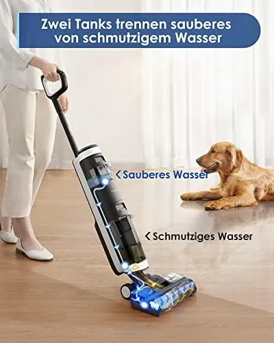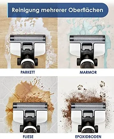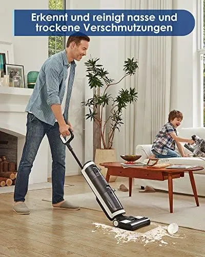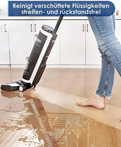 Wischen und saugen mit einem Schritt auf und hinterlassen einen streifenfreien Boden.
