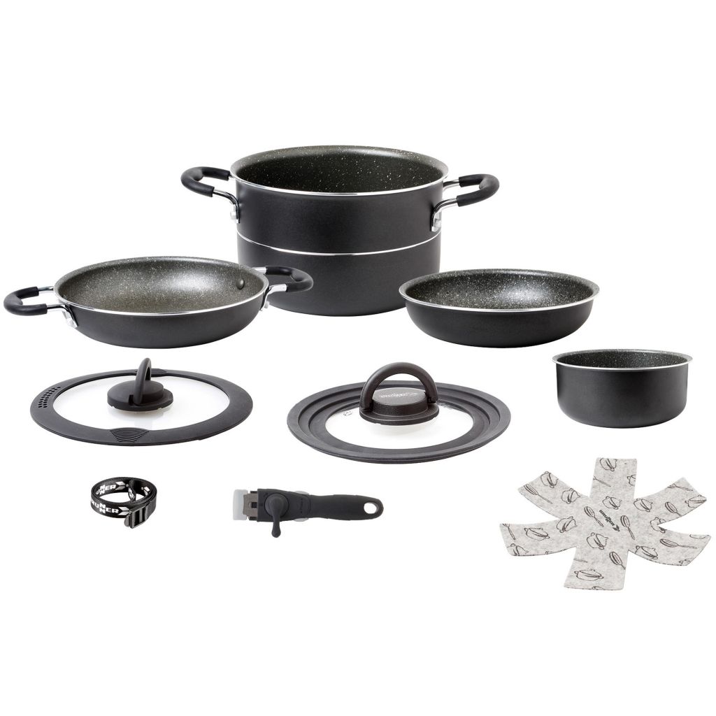 Alle Teile lassen sich ineinander verstauen. Material: Aluminium.