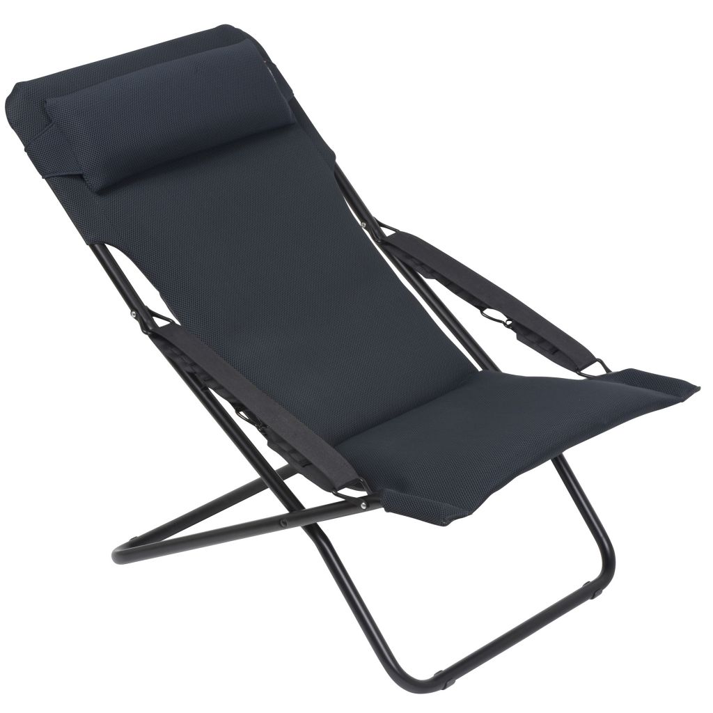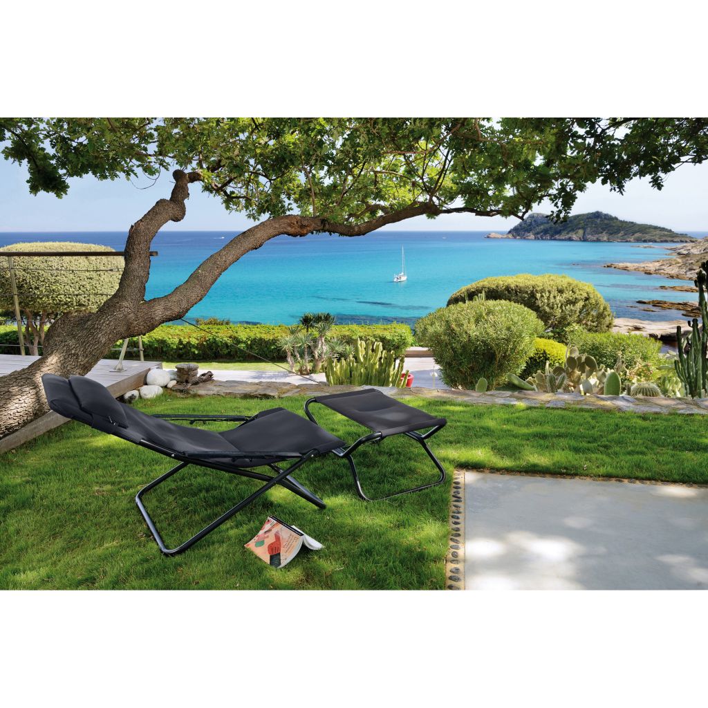 Exklusiver Liegestuhl mit großem Rahmen. Rohrstruktur ø 25 mm aus HLE-Stahl (Haute Limite Elastique), rostfrei (Korrosionsschutz) ohne Querstrebe vorne an der Sitzfläche. Armlehnen mit verstärktem Gewebe, durch Karabinerhaken in 3 Positionen verstellbar (davon eine Liegeposition). Bezug abnehmbar. Verstellbares und abnehmbares Kopfpolster. Bodenschoner. Material: Bezug oben: 100 % PES; Bezug unten: 72 % PVC, 28 % PES. 5 Jahre Garantie.