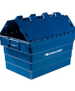 Stapelbare und nestbare Kunststoffbox mit 60 l Fassungsvermögen, sowie einer Tragfähigkeit bis 35 kg. Der zweiteilige Klappdeckel ermöglicht leichtes Be- und Entladen. Seitenwände und Boden der Transportbox sind vollständig geschlossen. Die stabile Kunststoffbox ist mit geschlossenem Deckel bequem stapelbar. Durch den leicht konischen Körper punktet die FF-Transportbox zudem für die platzsparende Lagerung und den Leertransport. Die Transportkisten mit offenem, seitlich geklapptem Deckel werden einfach ineinander geschachtelt.