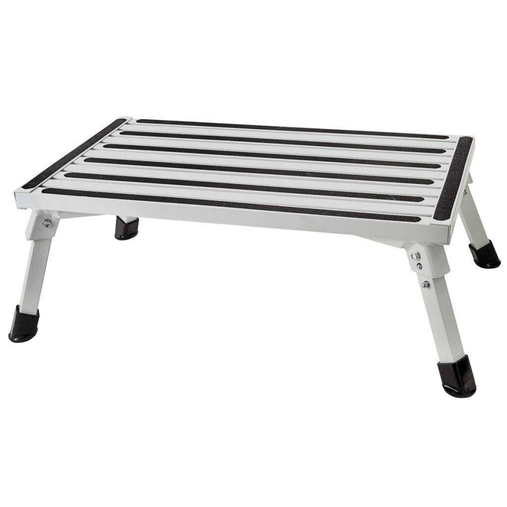 Superstabile Trittstufe mit einklappbaren Standbeinen.