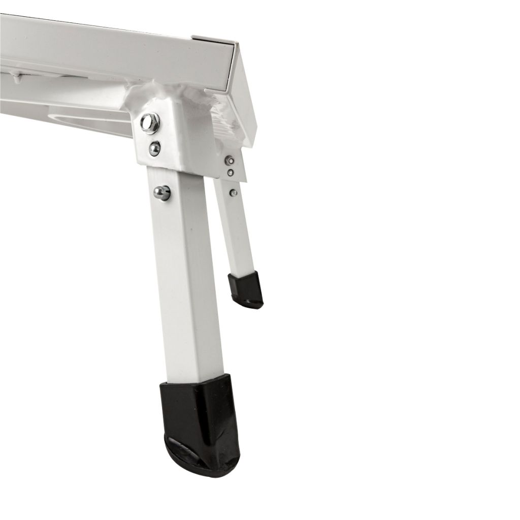 Super stabile Trittstufe mit einklappbaren Standbeinen. Robuste Konstruktion aus pulverlackiertem Aluminium. Hohe Standfestigkeit. Mit großflächiger, rutschfester Trittfläche. Sehr kompaktes Maß. In der XL-Version mit noch mehr Sicherheit durch großzügig vergrößerte Trittfläche. GoStep R mit 4-fach höhenverstellbaren Standbeinen.