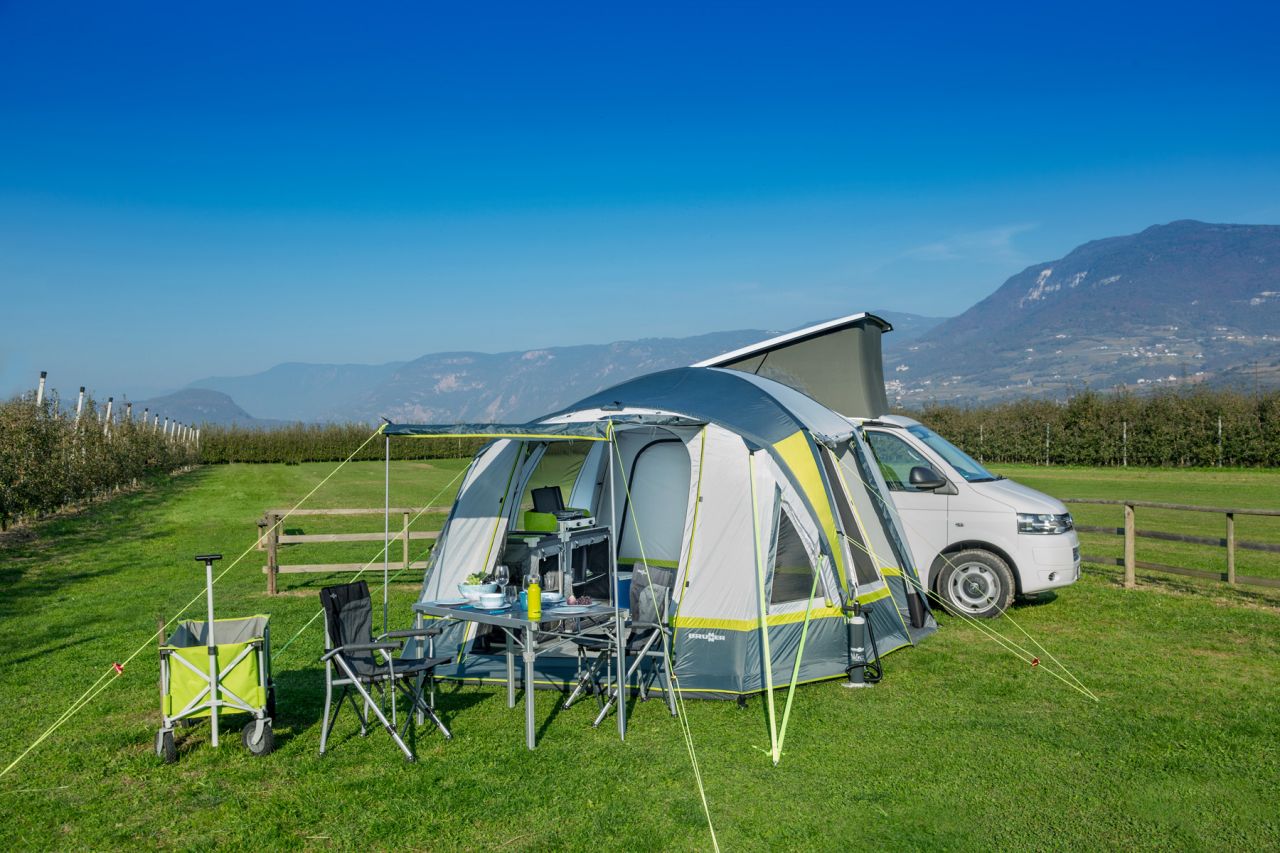 Das aufblasbare Trouper Mobilzelt präsentiert sich mit all den einzigartigen Eigenschaften der Aerotech Zelt- und Vorzeltkollektion. Mit einer Verbindungsschleuse, die einen Höhenbereich von 180 bis 220 cm abdeckt ist es für den Einsatz an größeren Minivans geeignet.