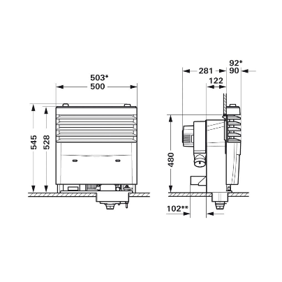 Truma S 3004, für Flüssiggas LPG, mit Zündautomat, Thermostat und Einbaukasten (ohne Verkleidung). Für den Einsatz im Caravan, Mobilheim und Reisemobil.