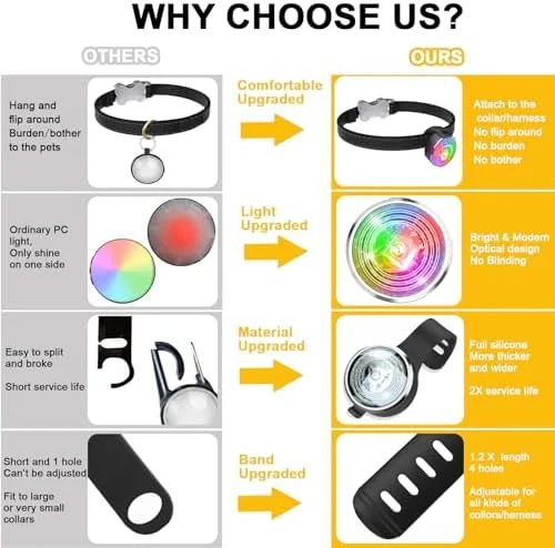 • 🐾 Superhell & 8 Modi: Das Hundelicht bietet 8 Farben und RGB-Modus, damit Sie Ihren Vierbeiner immer im Blick haben – heller und schöner als herkömmliche Modelle.