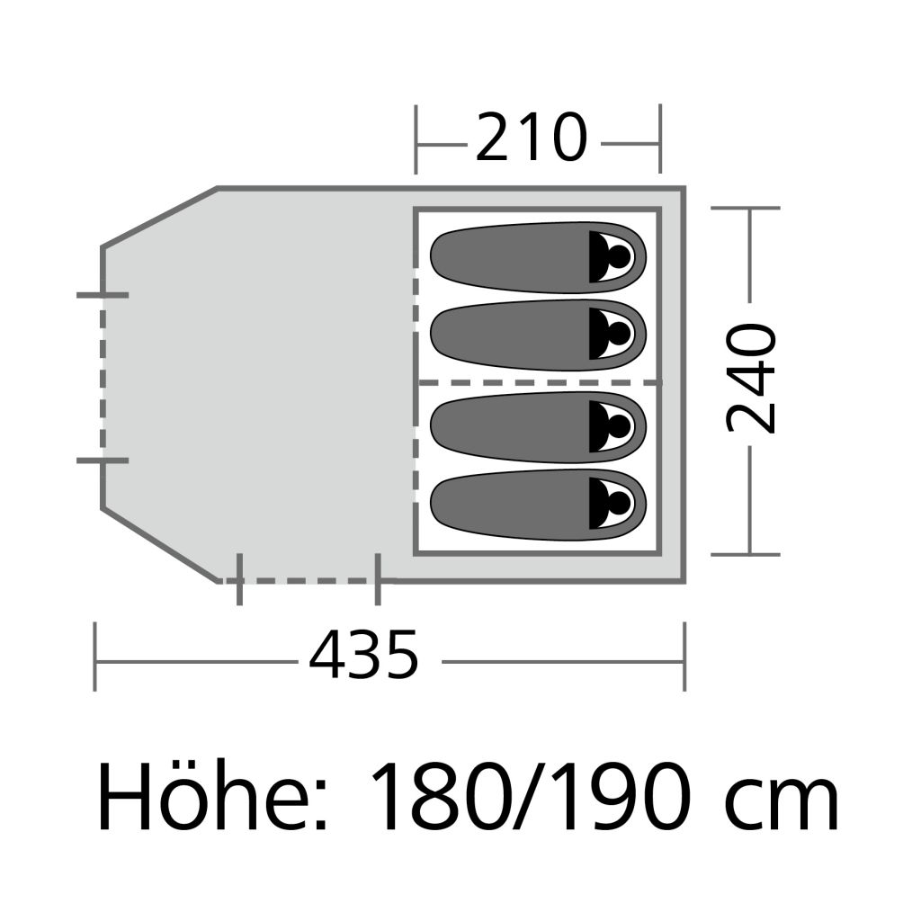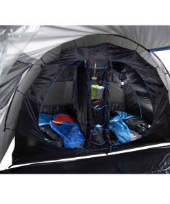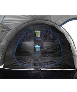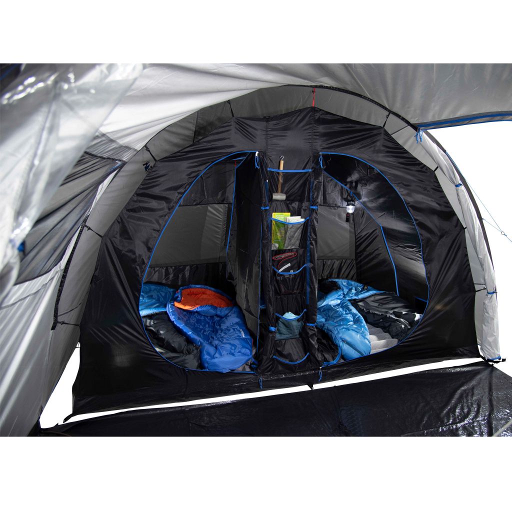 Abgedunkeltes Innenzelt mit Vario Vent Control System. Die Gazeeingänge halten lästige Plagegeister fern und können bequem von innen je nach Klima variabel bedient werden. Das Innenzelt kann durch eine herausnehmbare Trennwand vergrößert werden. Praktische Organizer und Innenzelttaschen für Utensilien und Lampenhalter für eine Campingleuchte oder Taschenlampe runden den Komfort ab.