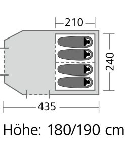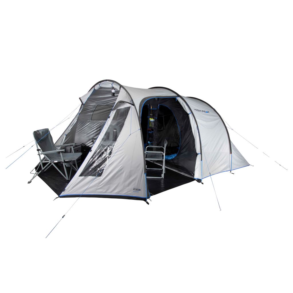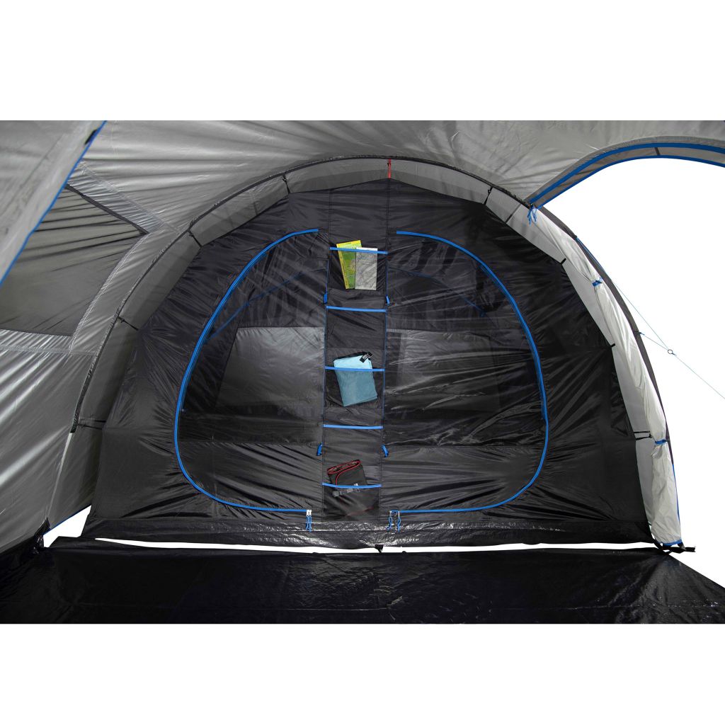 Familien-Tunnelzelt mit Stehhöhe. Der Vorbau dient als Wohnbereich und Stauraum. 2 Eingänge für flexibles Öffnen und mehr Bewegungsfreiheit. Gazefenster mit Abdeckklappe für optimale Lüftung, sowie herausnehmbarer leicht zu reinigender Zeltboden. Klarsichtfolienfenster bringen Licht ins Zelt. 2 Dauerventilationen belüften das Zelt für erholsamen Schlaf und sollten immer geöffnet sein. Mit extra großem Abstand zwischen Außen- und Innenzelt für eine bessere Luftzirkulation.