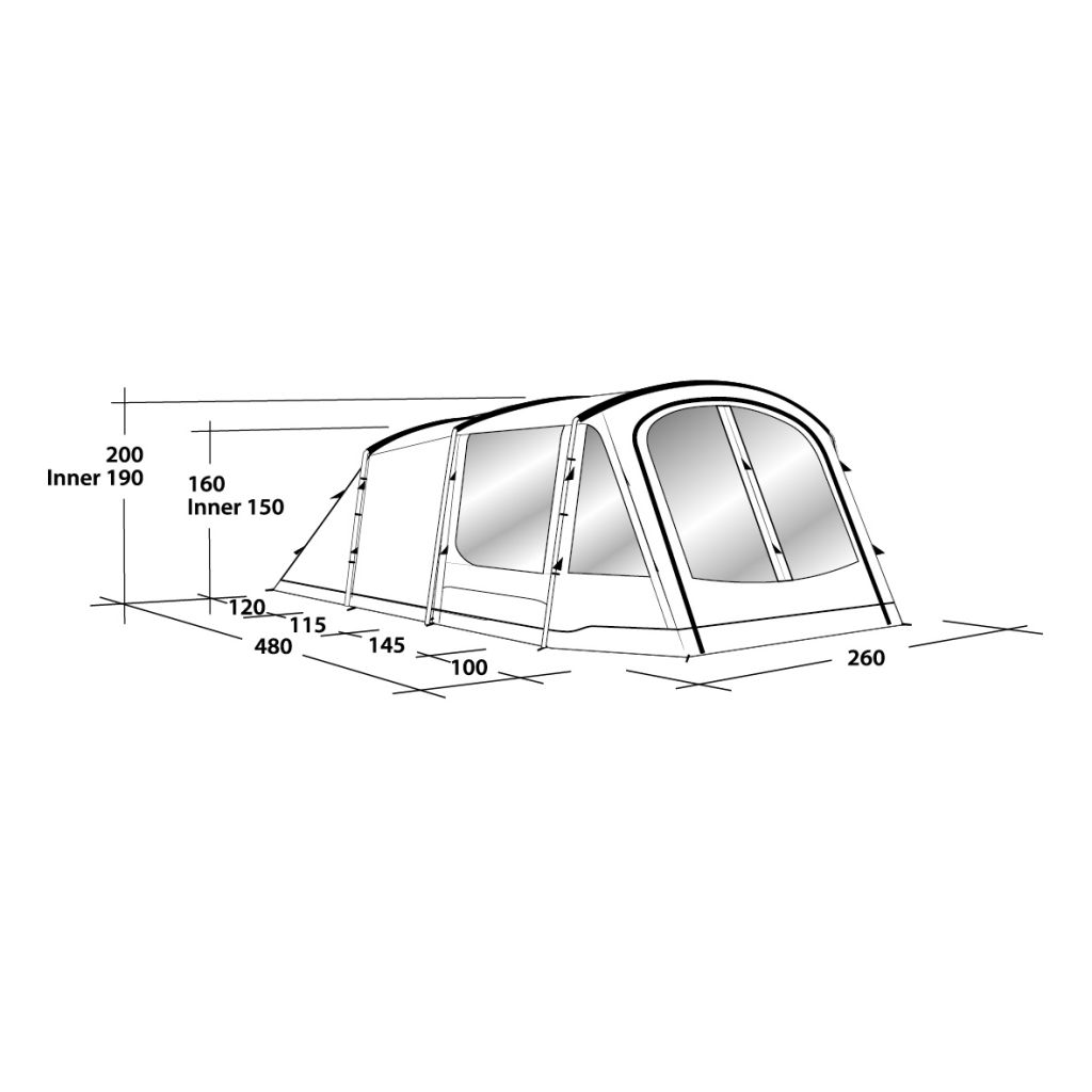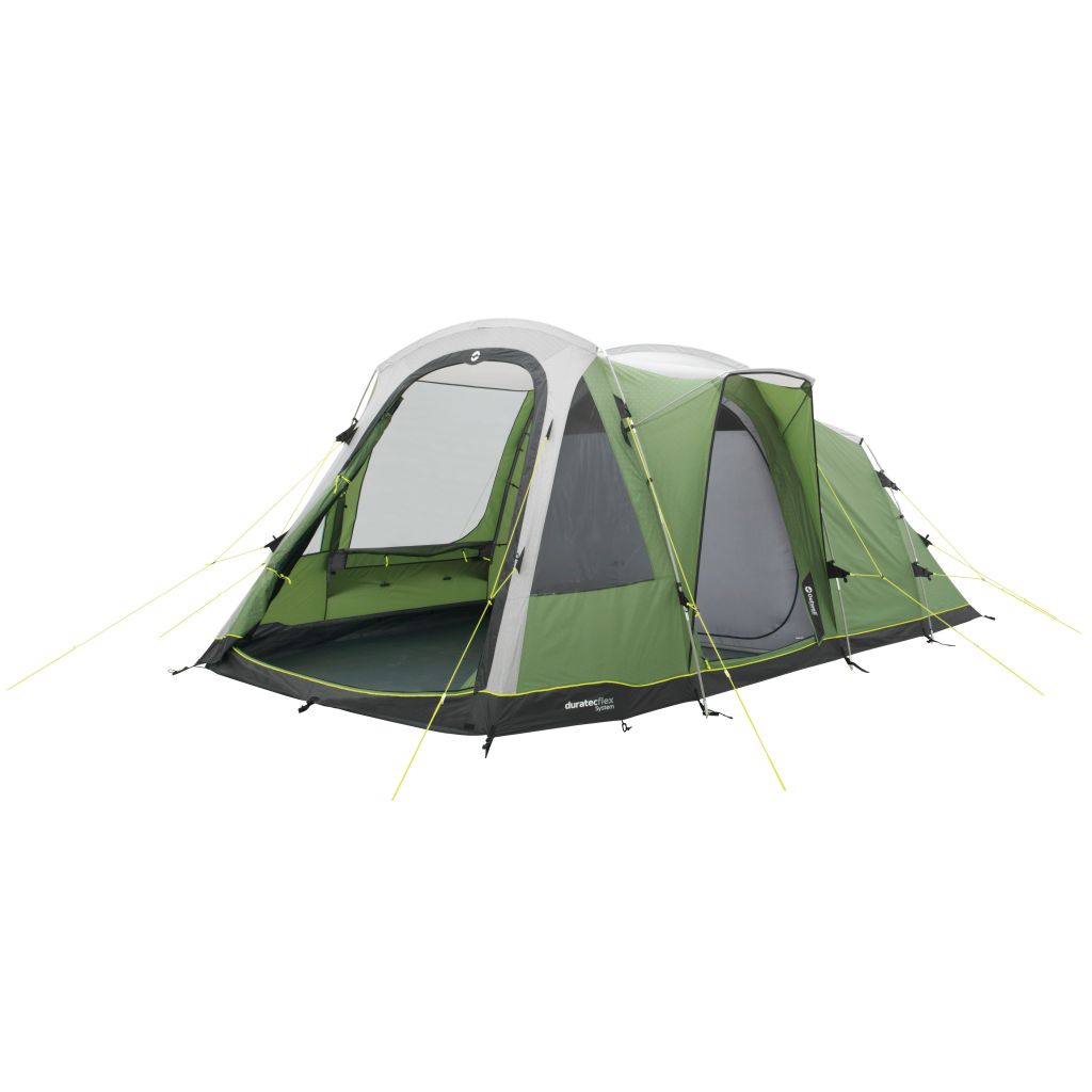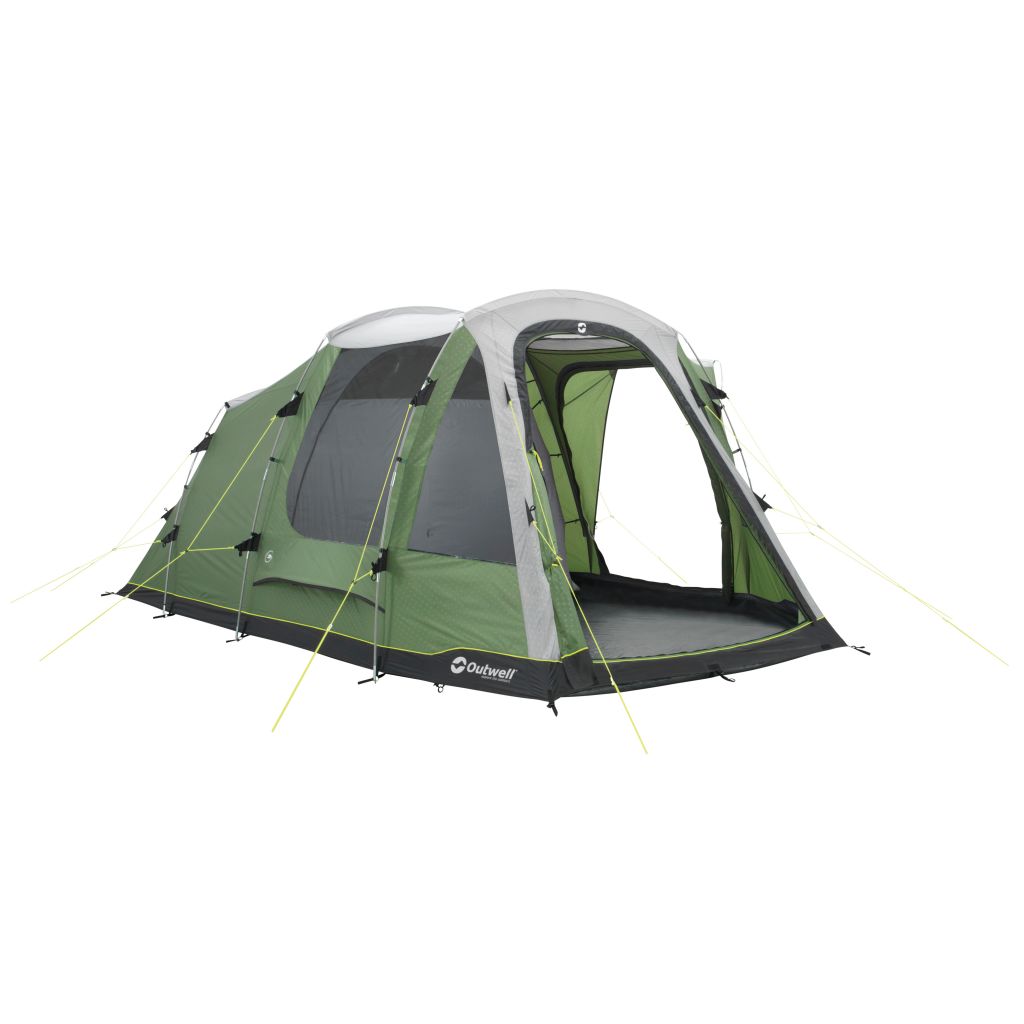 Mit dem Dayton von Outwell sind Sie für kürzere Reisen bestens gerüstet. Für Wochenendausflüge oder zum Herumreisen ist das kompakte Packmaß ideal. Das Zelt bietet volle Stehhöhe und reichlich Stauraum dank Netztaschen im Innenzelt. Der große Vordereingang kann an warmen Tagen vollständig geöffnet und mit einem Moskitonetz gegen Insekten geschützt werden, während der regengeschützte Seiteneingang an regnerischen Tagen unverzichtbar ist. Große Fenster lassen die Camper das Geschehen außerhalb hautnah erleben oder werden dank aufrollbarer Vorhänge komplett geschlossen, um die Privatsphäre zu wahren. Die abgedunkelten Premier-Schlafkabinen sind mit einem 360° Access System ausgestattet. Überzelt und Innenzelt sind mit Kabeldurchführungen versehen.