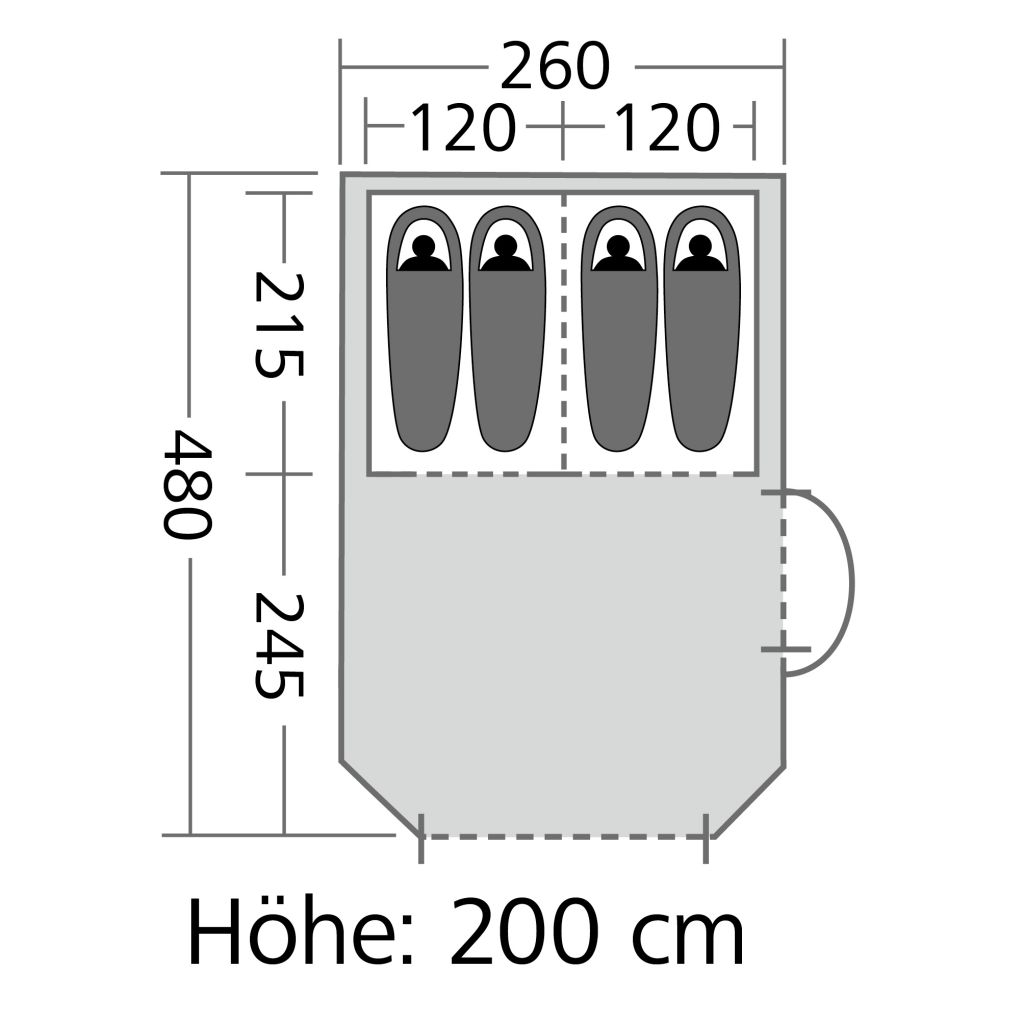Lieferumfang: Zelt, ø 9,5 und 12,5 mm GFK Gestänge, Abspannmaterial, Tragetasche