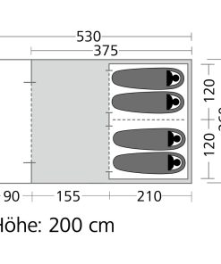 Familienzelt für 4 Personen mit einem großzügigen Wohnbereich mit großen Klarsichtfenstern, die rundum für einen schönen Panoramablick sorgen. Die vielen Ventilationsmöglichkeiten und die Dauerventilation in der Vorderwand sorgen für ein angenehmes Klima im Zelt. Das Innenzelt ist mit einer Trennwand in zwei Schlafbereiche aufgeteilt. Das feste Vordach schützt vor schlechtem Wetter und bietet zudem einen perfekten Schattenplatz. Der fest eingenähte Boden hält Nässe und Ungeziefer draußen. Innenzelttaschen bietet Stauraum für Zubehör und eine Kabeldurchführung bietet auch Strom im Zelt.