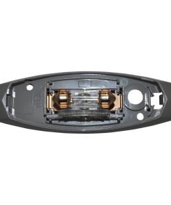Leuchte für vertikalen Anbau mit grauer Grundplatte. Mit 5 W Glühbirne.