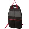 Utensilientasche mit Schminkspiegel. Gefertigt aus grau eingefassten Polyester 600D. Die Befestigung erfolgt mittels Metallösen, die am oberen Rand eingearbeitet sind; Maße B 30 × H 60 cm.