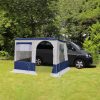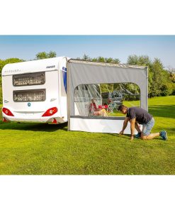 Das Schutzzelt Rolli Plus Panoramic besteht aus 2 Seitenwänden und einer Vorderwand, hergestellt aus Airtex-Gewebe. Innovative Ausstattungsmerkmale wie z. B. das Arretierungssystem der Dach- und Aufstellstangen, die getönte Folie der großen Panoramafenster mit Air-Vent-Funktion bieten dem Reisecamper ein hohes Maß Komfort. Die Seitenteile verfügen über je ein Air-Vent-Fenster, die Vorderwände sind bis Größe 7 mit 2, ab Größe 8 mit 3 Air-Vent-Fenstern ausgestattet. Alle Wände können vollständig geöffnet, zur Veranda abgeklappt und herausgenommen werden. Die beiden Hälften der geteilten Vorderwand können unabhängig voneinander geöffnet oder entfernt werden. Zudem kann die in der Vorderwand eingearbeitete Tür wahlweise links oder rechts angebracht werden. Zur serienmäßigen Ausstattung gehören ein 15 cm hoher äußerer Faulstreifen, ein 30 cm hoher innerer Faulstreifen, abgedeckte Reißverschlüsse sowie Gardinen für Vorder- und Seitenwände.