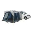 Freistehendes Buszelt mit aufblasbarem A.I.R. Tech Luftgerüst (2 Bögen). Verbindungsschleuse mit direktem Zugang zum Fahrzeug.