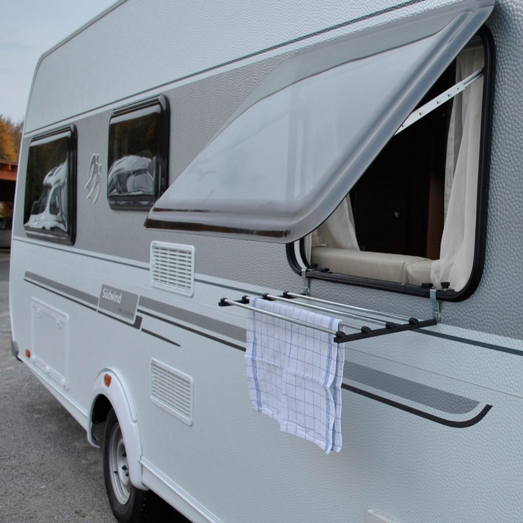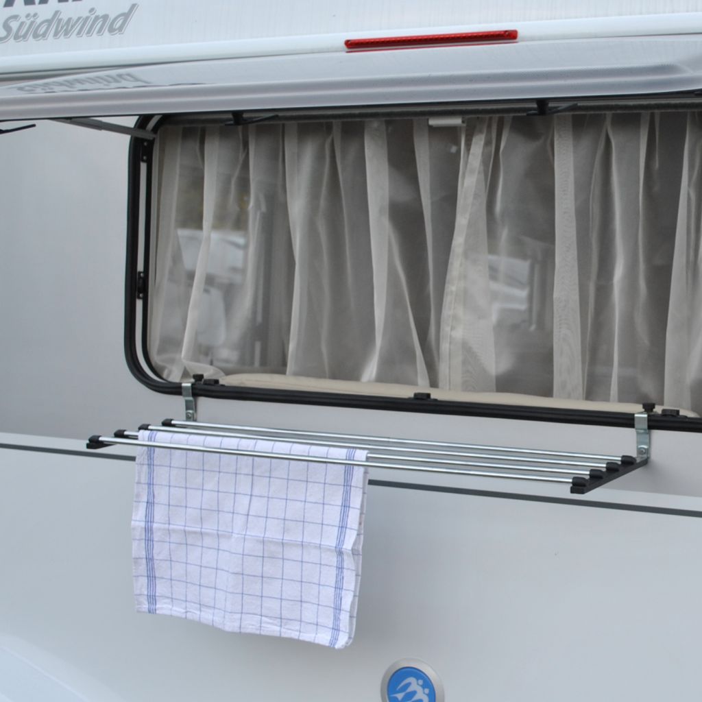 Verwendbar für kleine und große Ausstellfenster. Fenster lassen sich auch mit eingehängtem Wäschetrockner schließen. Universell einsetzbar aus verchromten Messing.