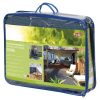 Strapazierfähiger, witterungsbeständiger und UV-stabiler Vorzeltteppich aus kunststoffummanteltem Polyestergewirke, Gewicht ca. 545 g/m². Leicht zuschneidbar, franst nicht aus. Zum Reinigen einfach abfegen, ausschütteln oder abspritzen. Lieferbar in den Ausführungen Costa (uni) und Plus (mit Karo-Muster), jeweils in 3 Farben. Bei der vorkonfektionierten Ware ist eine robuste Trage- und Aufbewahrungs-tasche im Lieferumfang enthalten.