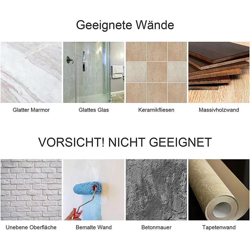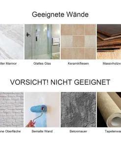 - Einfache Installation: Die selbstklebende Installation ist eine gute Wahl, ohne Werkzeug, einfach das selbstklebende Papier abreissen und auf die glatte Wand kleben, was einfach, bequem und schnell ist.